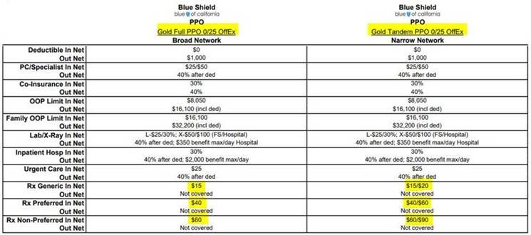 For out-of-state employees, the Tandem network utilizes the same Blue Card network as the Full PPO network. The only difference is the Tandem network has tiered pharmacy benefits! Tandem plans utilize the Spectrum Pharmacy network while the Full PPO pans utilize Blue Shield’s Ultra Pharmacy Network, and the formulary is the same. Copays are lower at Level A pharmacies than Level B pharmacies: